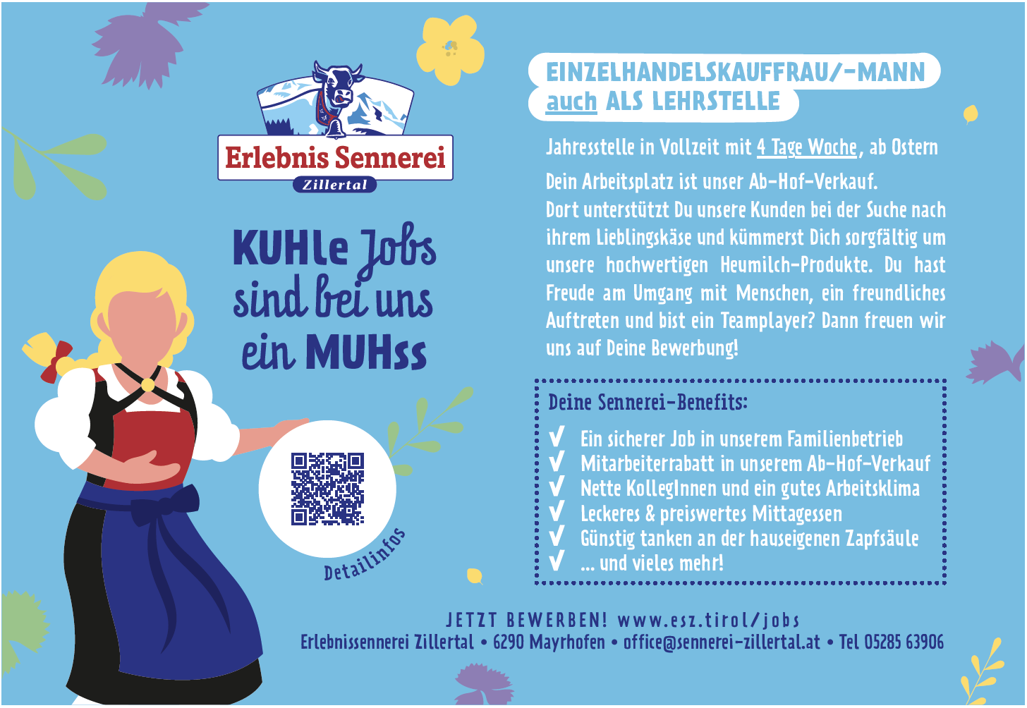 Aufgrund unserer unterschiedlichen Unternehmensbereiche bieten wir Dir ein breit gefächertes Jobangebot. Deiner Karriere in der Erlebnissennerei Zillertal steht also nichts mehr im Weg! pr