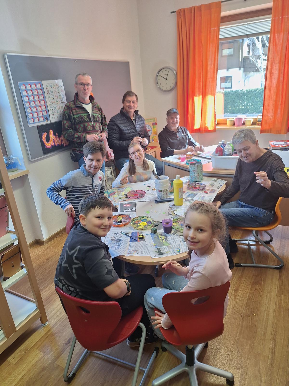 Mit ihren „Schätzen“ begaben sie sich in die Volksschule, wo die Kinder der Volksschule mit den Klienten der Gartengruppe der Lebenshilfe Ramsau nach Motiven überlegten und anschließend bemalten. Da gab es einiges zu erzählen und vor allem wurde viel gelacht. Sogar Bürgermeister Fritz Steiner stattete uns einen Besuch ab und bewunderte die kreativen, gemeinsam erstellten Werke. Das Beisammensein und das gemeinsame Arbeiten lassen uns als Schule sozial emotional reifen und uns in der Persönlichkeitsentwicklung weiterkommen.