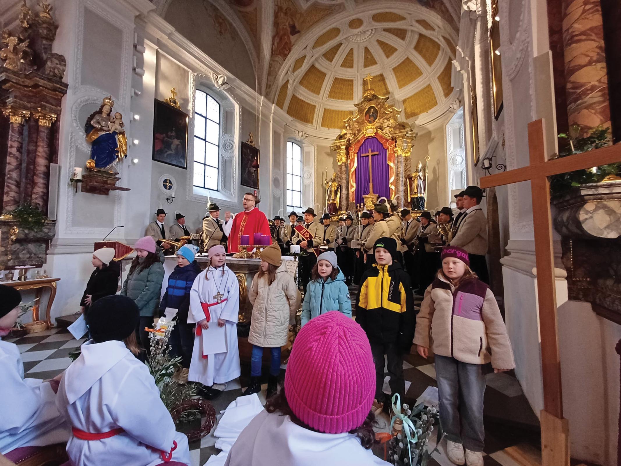 Von den verschiedenen Sammelplätzen in Hippach, Aschau und Finkenberg zogen die Gläubigen mit geschmückten Palmbuschen und bunten Zweigen in die Pfarrkirchen ein. In der anschließenden Messfeier gestalteten die Erstkommunionkinder mit einer kindgerechten Darstellung der Passionsgeschichte ein besonders berührendes Element des Gottesdienstes. Ihre Beteiligung machte das Geschehen auch für die jüngsten Mitfeiernden greifbar und vertiefte die Bedeutung dieses Tages.