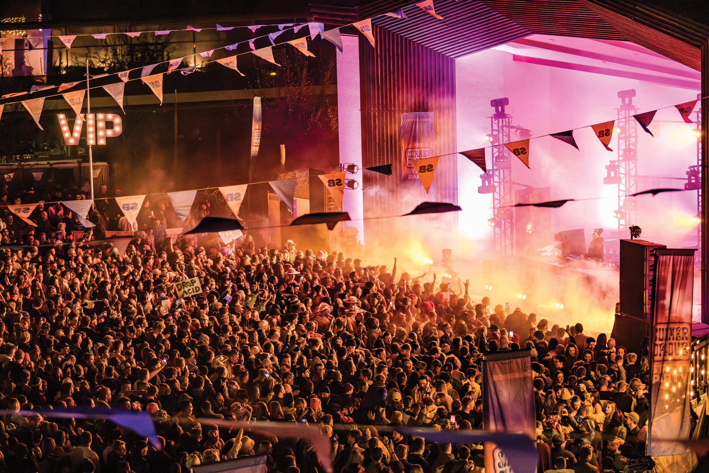 Nach Sonnenuntergang verlagert sich das Geschehen ins Tal. Clubs und Bars in Mayrhofen werden zu pulsierenden Hotspots und bieten die perfekte Bühne für lange Partynächte – von etablierten Venues wie Racket Club, Fun Haus oder Arena Night Club bis hin zu Pop-up-Locations wie Hans the Butcher, die Snowbombing seinen unverwechselbaren Charakter verleihen.
