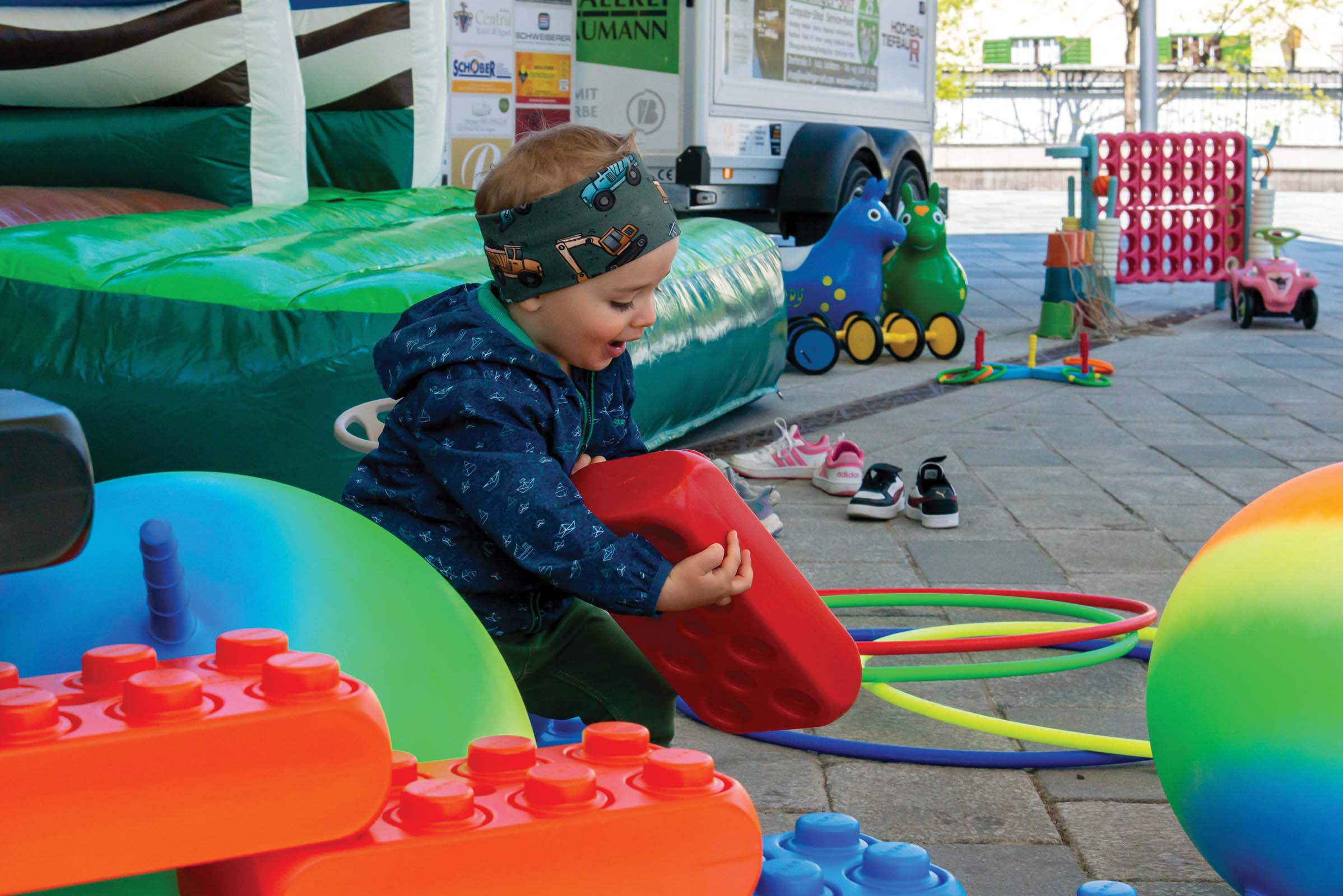 Das Spielmobil ist unter anderem mit einer Hüpfburg sowie zahlreichen Outdoor-Spielgeräten ausgestattet und soll künftig bei Veranstaltungen in Fügen und Umgebung zum Einsatz kommen. Ziel ist es, attraktive Spiel- und Bewegungsangebote für Kinder zu schaffen.