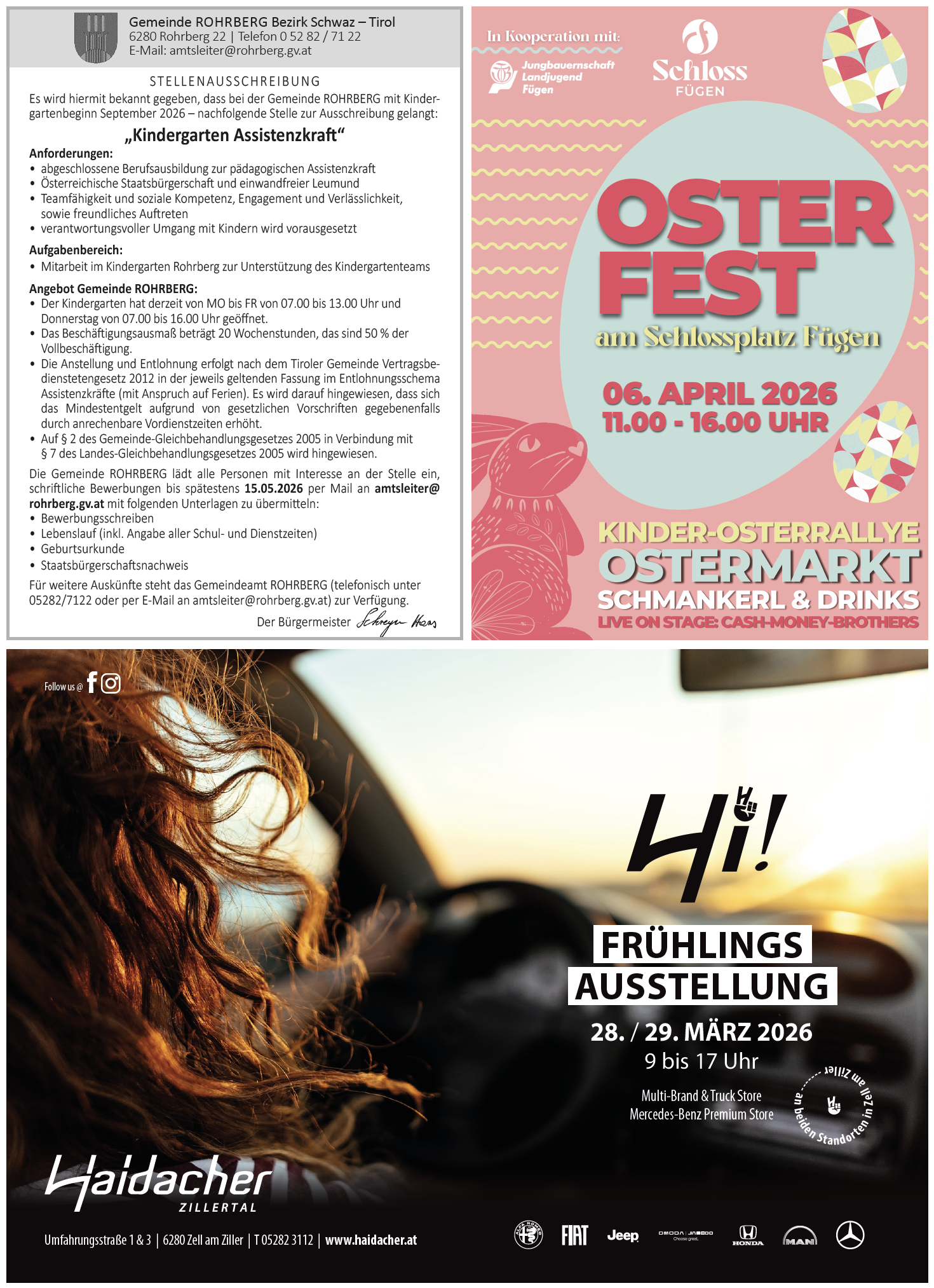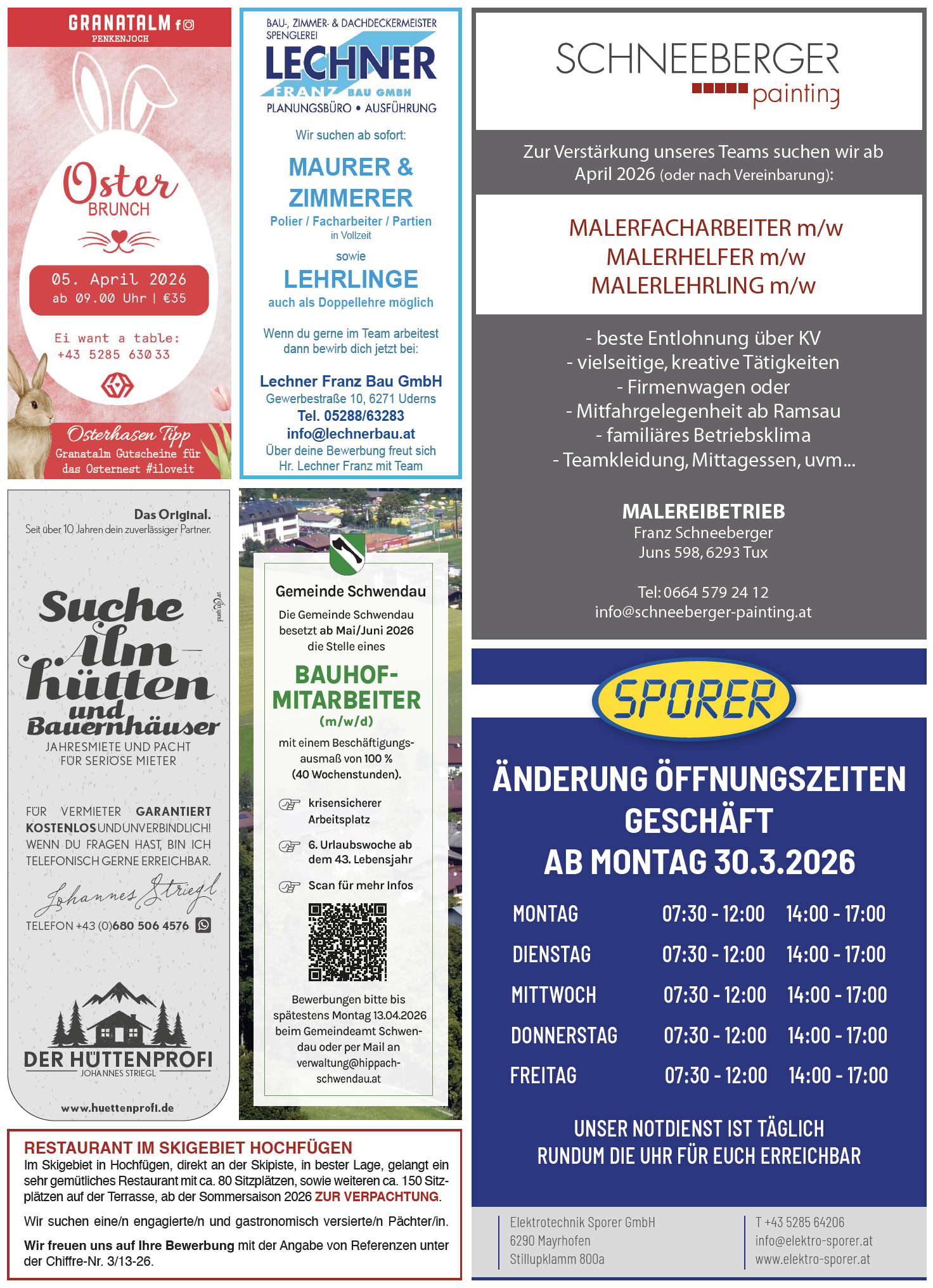 Anzeigen in der Zillertaler Heimatstimme KW 13
